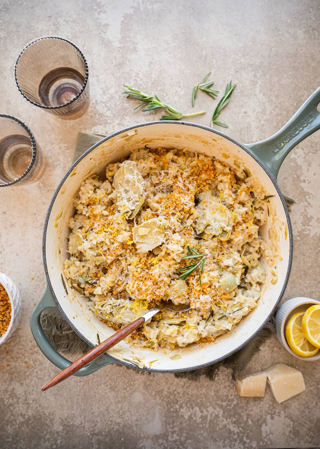 Creamy risotto meets bright lemon and marinated artichokes — comforting but light, and perfect for dinner or a spring weekend meal.